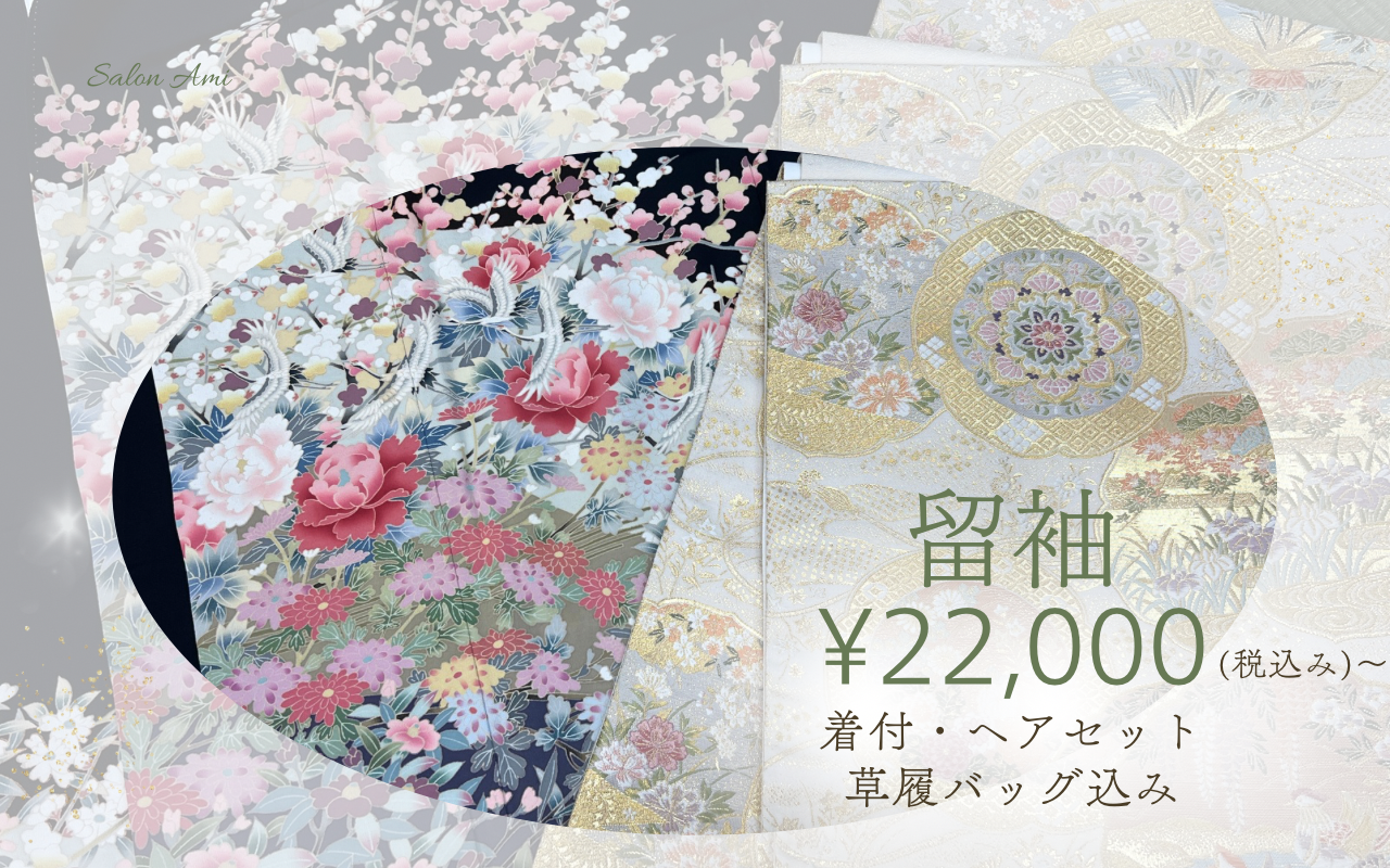 | 留袖 | 22,000円〜 | 着付け・ヘアセット・ ぞうり・バッグ込み |